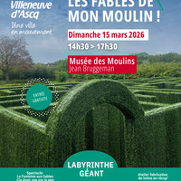 Dimanche 15 mars, 14h30 : Les fables de mon moulin! Dimanche 15 mars de 14h30 à 17h30, plongez dans les contes et légendes avec un labyrinthe géant, un atelier et un spectacle gratuits et pour toute la famille !