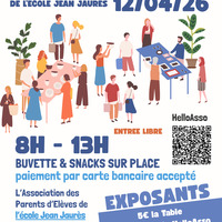 Dimanche 12 avril, 08h30 : Braderie des écoles Jean Jaurès L'association des Parents d'Elèves des écoles Jean Jaurès organise sa deuxième braderie : le Dimanche 12 Avril au sein de l'école maternelle de 8h à 13h, entrée libre pour les visiteurs.